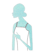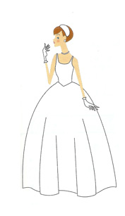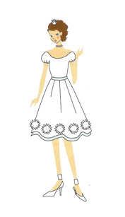 上半身は、体にフィットしウエストからふんわり広がったデザイン。パニエなどでボリュームを調節できますし、どんな体系の方もお似合いになります。一番よく選ばれます。
